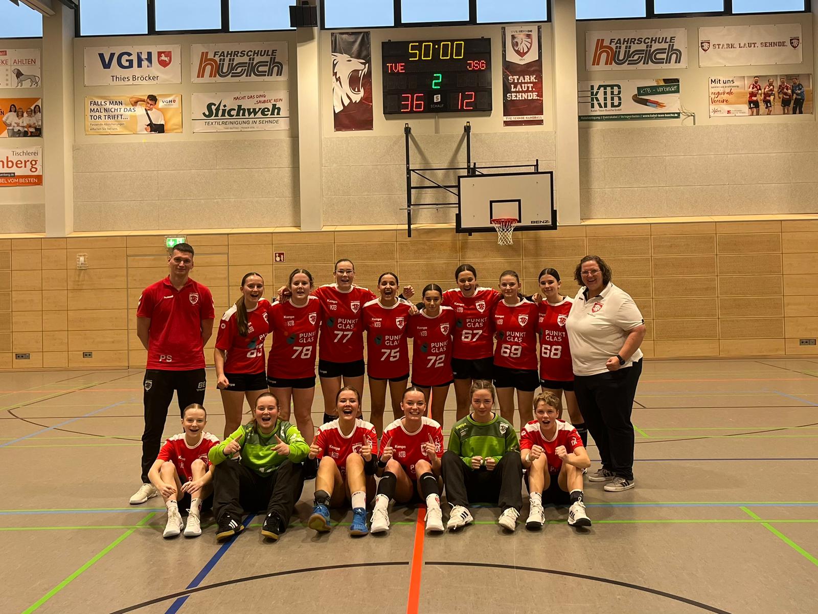 Für den TVE spielten: Kerstin Kinder und Kaya Karbstein im Tor, Julia Osterwald, Kristin Lotsch(1), Sarah Arrago, Anna-Lena Tillmann(3), Saskia Völlner(3/2), Johanna-Marie Tillmann, Katharina Strienke(4), Rosa Krill(4), Esma Özaslan, Miriam Sperlich(4) und Shahrzad Malekzadeh(1)