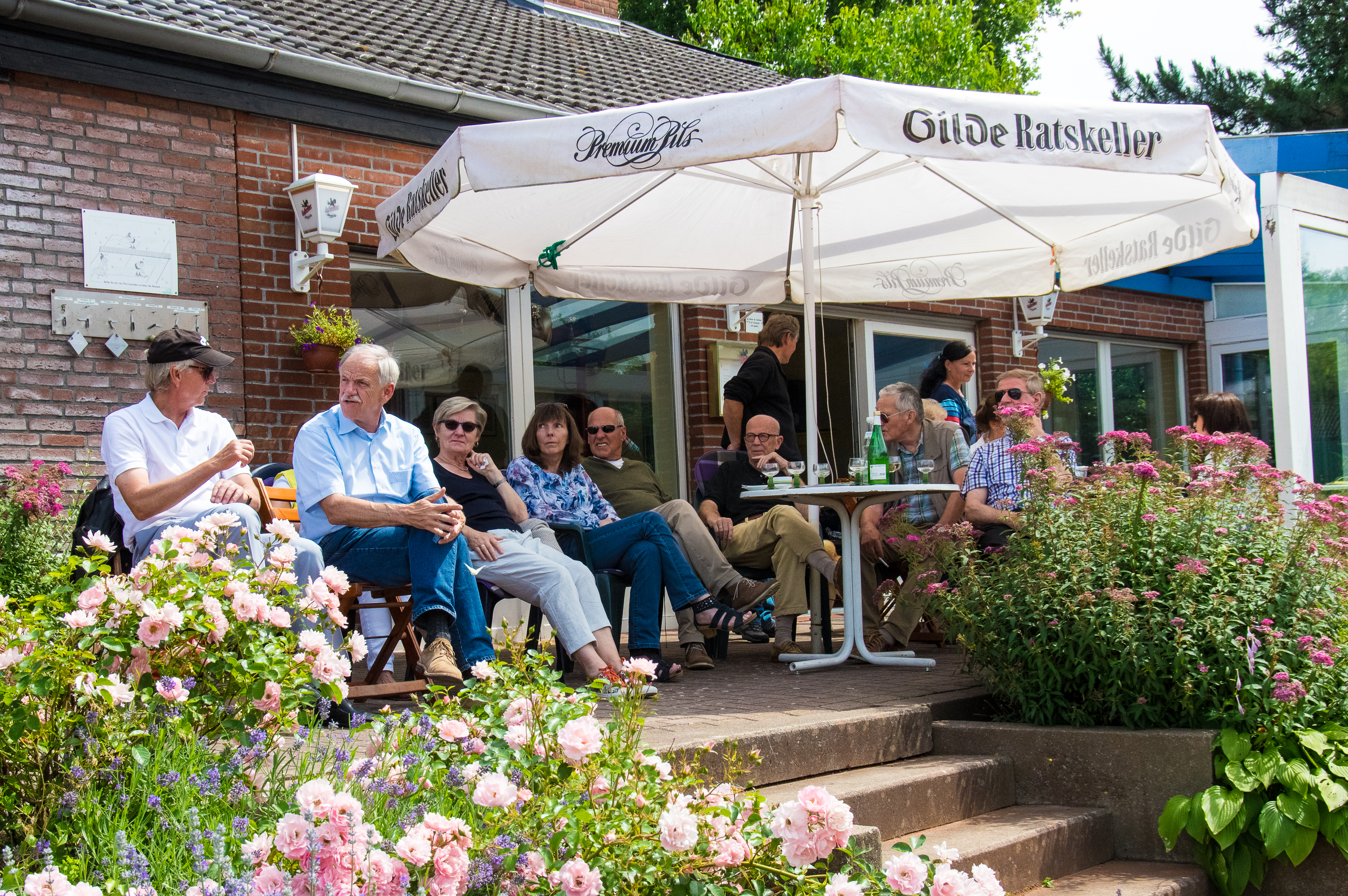 Die gemütliche Terrasse des Vereinsheims lädt zum Verweilen und zum Zuschauen ein.